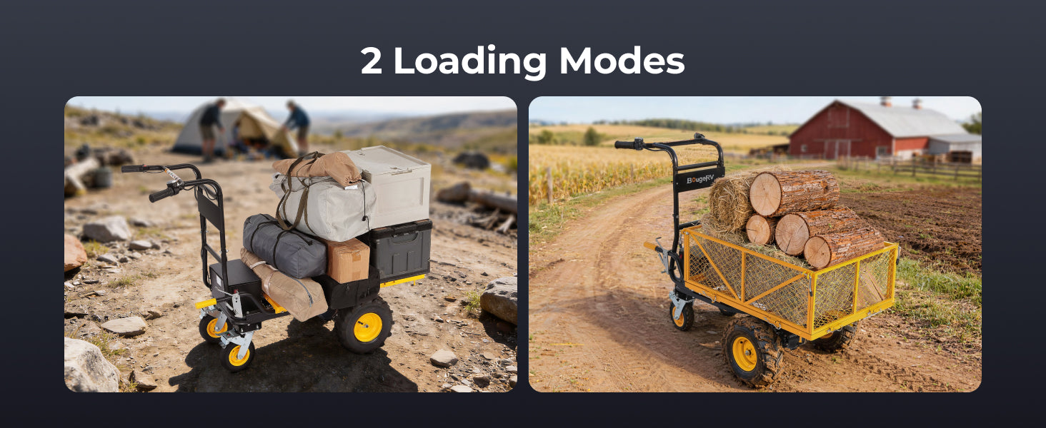 The GC660 supports up to 660 lbs of cargo and can tow up to 1000 lbs on slopes, making it ideal for heavy-duty hauling in gardens, yards, or construction sites.