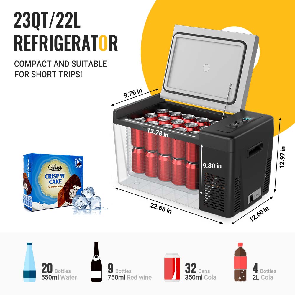 BougeRV 23 QT 12 volt refrigerator for car offers dual-zone functionality, and it can be as a freezer and a fridge. When it operates as a freezer, its temperature range is -7°F - 32°F; While it's used as a fridge, its temperature range is 32°F - 50°F.
