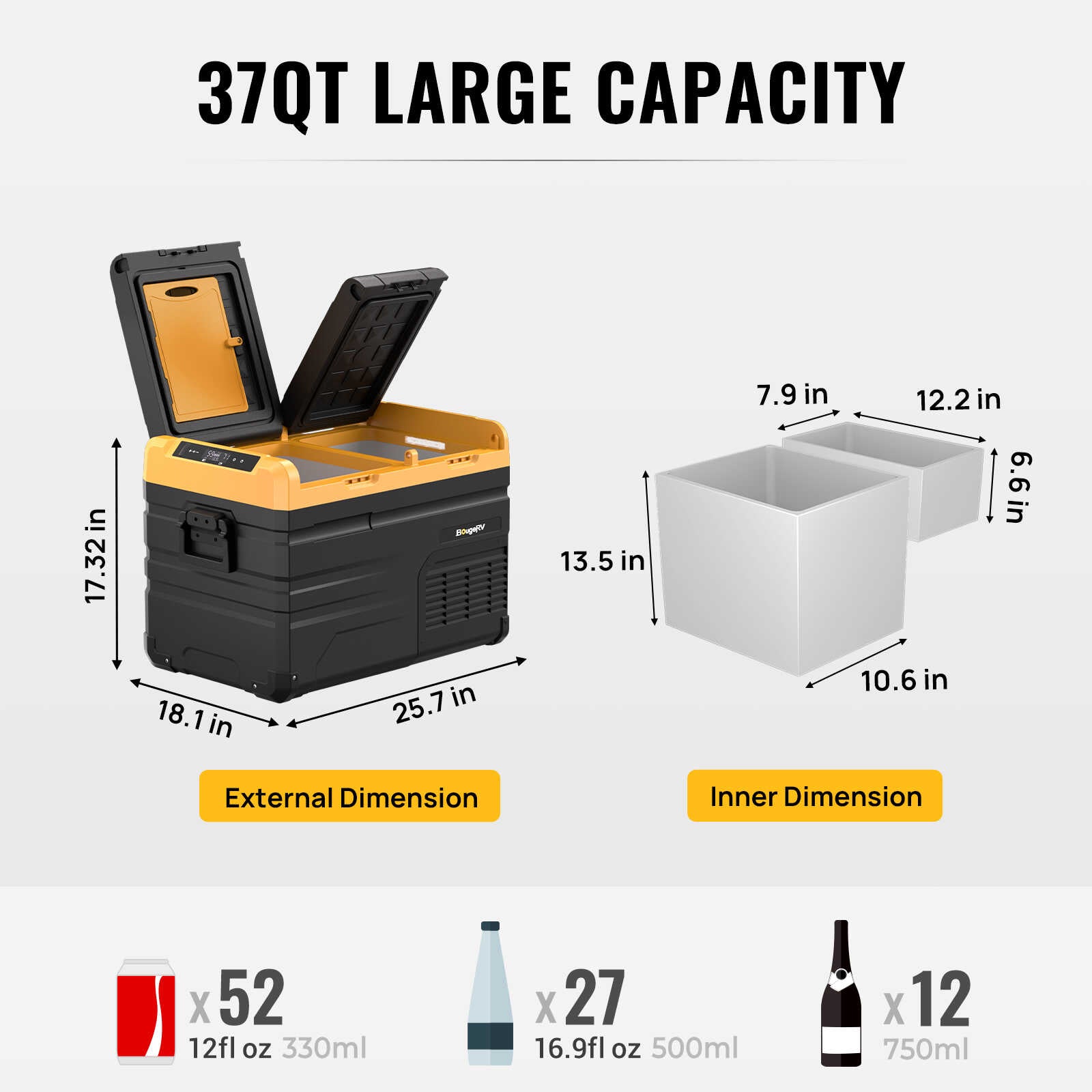 With compressor refrigeration technology, the BougeRV ED series dual zone fridge can achieve rapid cooling in just 15 minutes, keeping food fresh (68°F~32°F).
