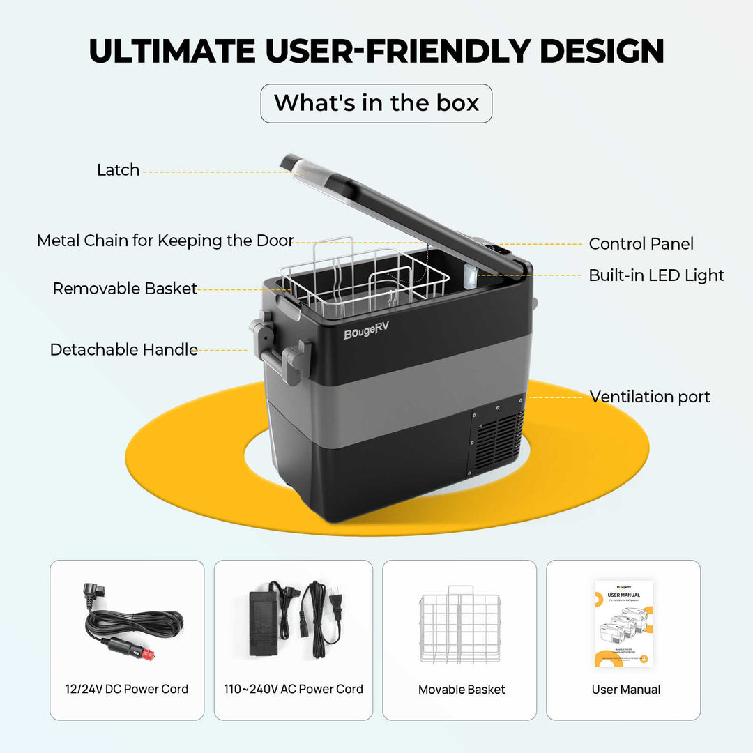 With 35mm thick insulation, BougerRV 53 Quart Portable Refrigerator will keep your food and stuff cool for a long time after turning it off