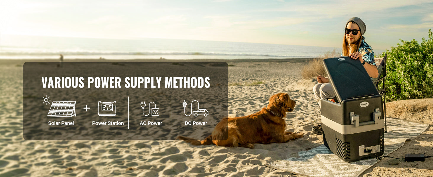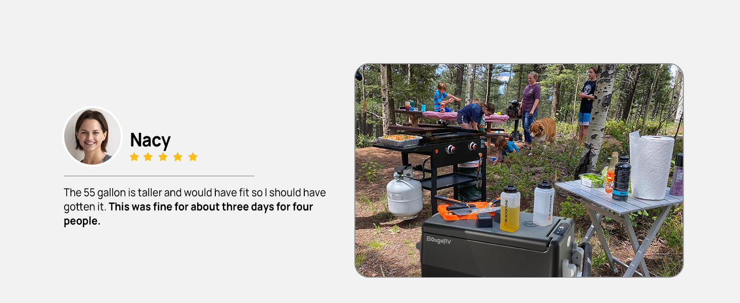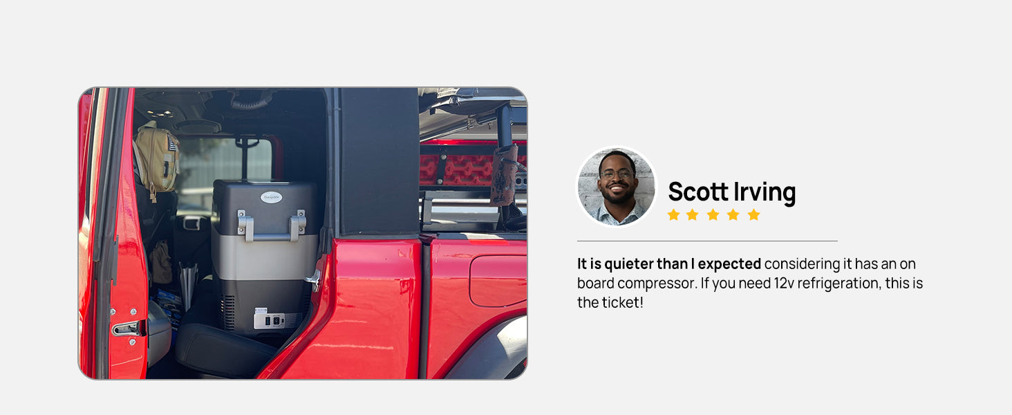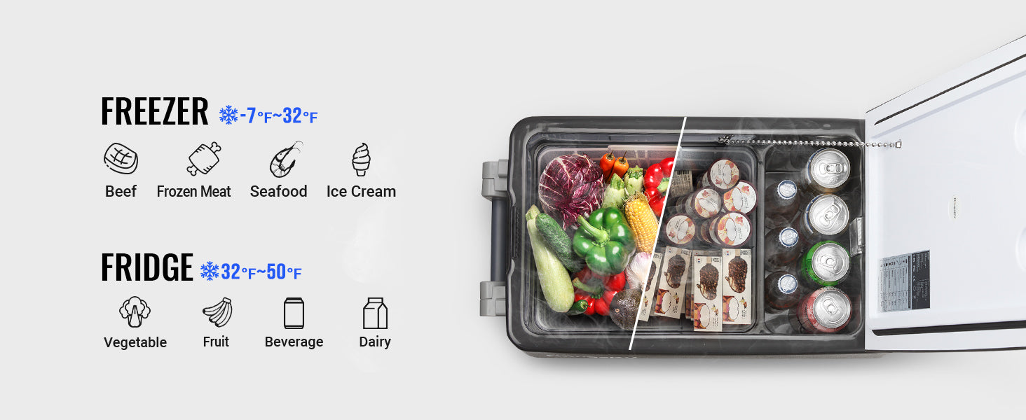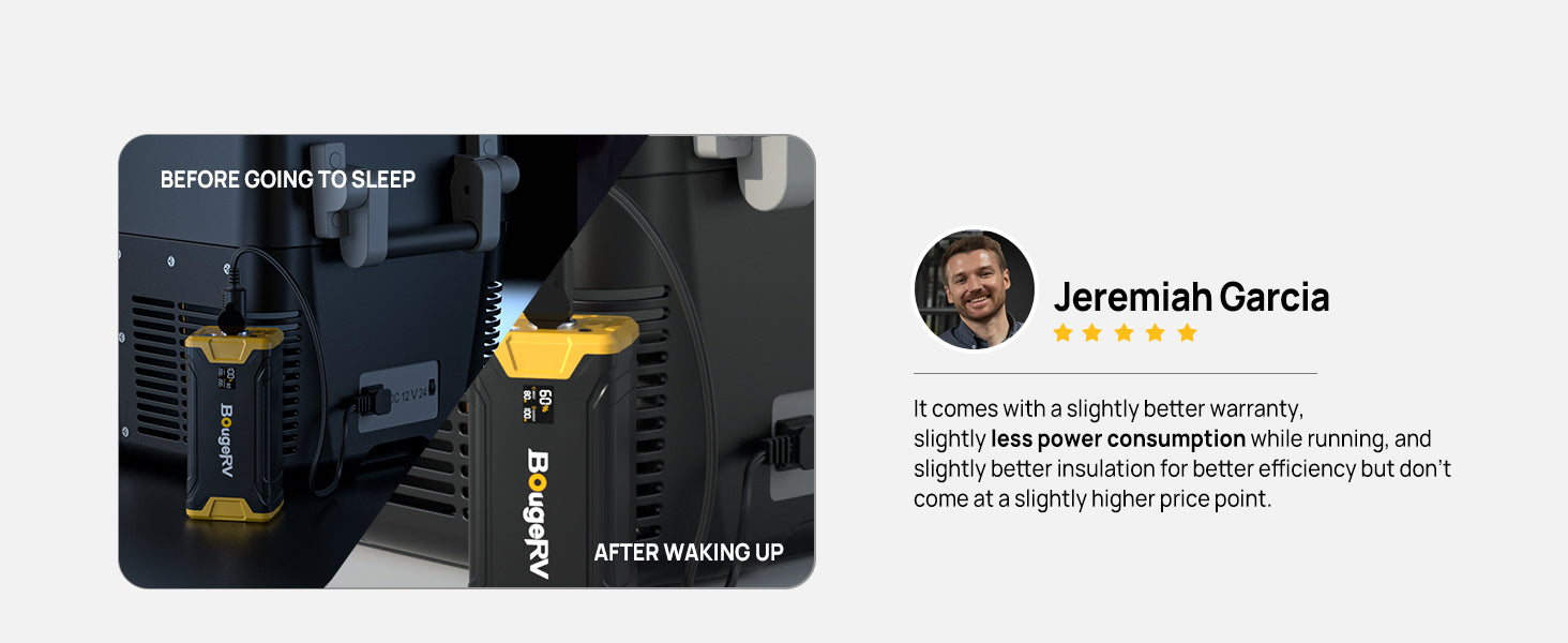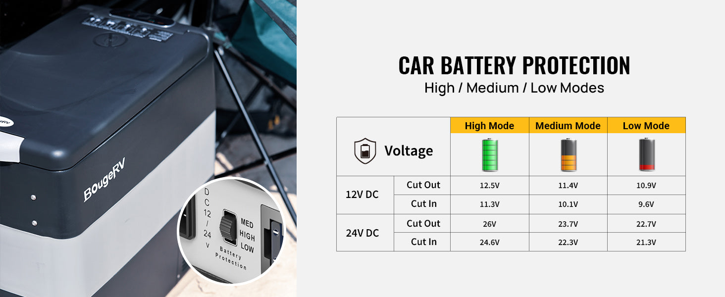 BougeRV portable freezer for camping can be powered by 12/24 V DC on a variety of vehicles, including SUVs, trucks, RVs, campers, jeeps, vans, boats, and more.