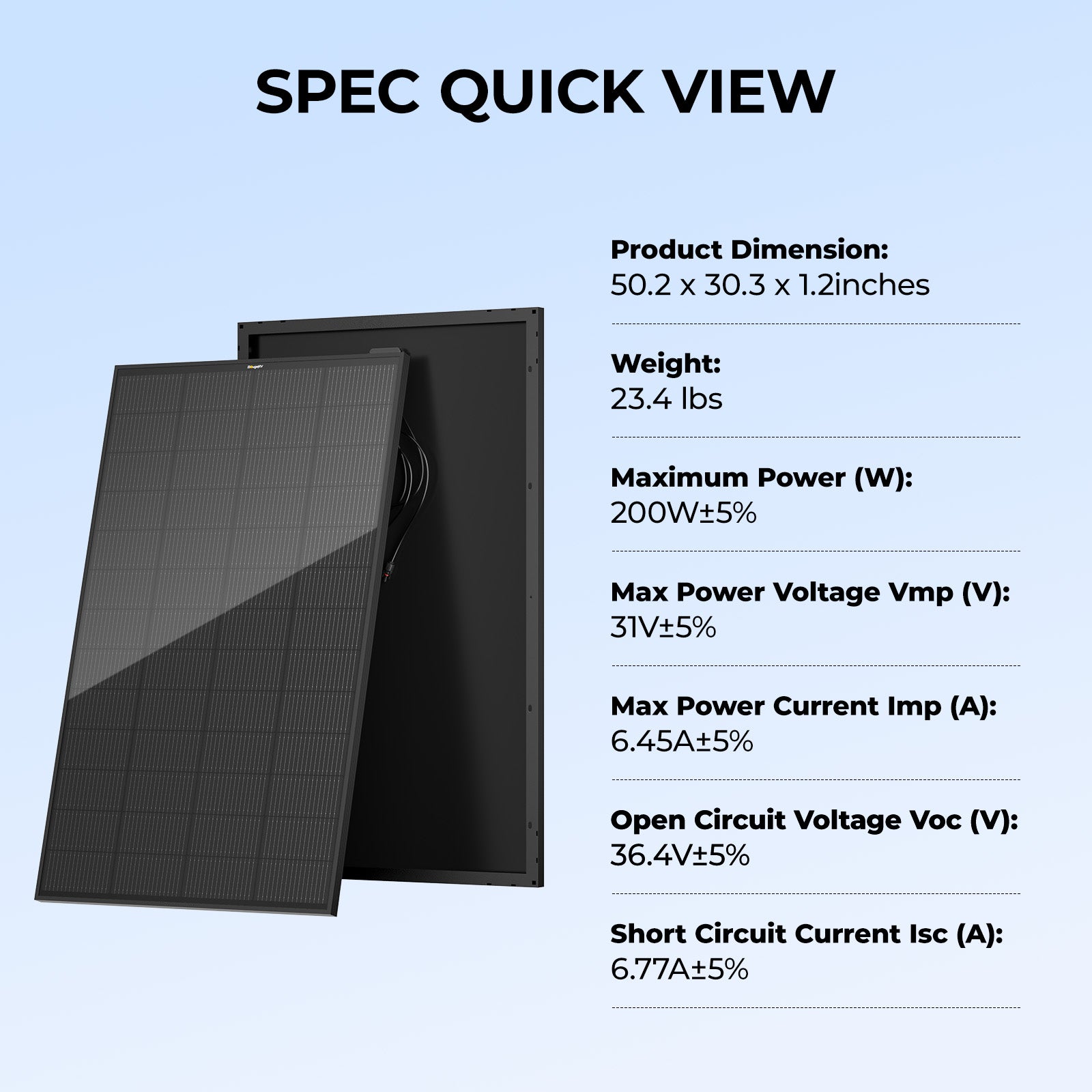 | Max Power (Pmax) | 200±5%W |