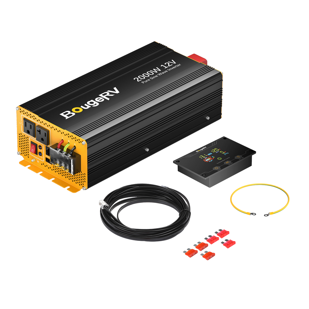 Fully 2000W output, all appliances under 2000W can be run. Equipped with 15A/20A outlets, making sure the BougeRV pure sine wave inverter can be run for a long time at 2000W.