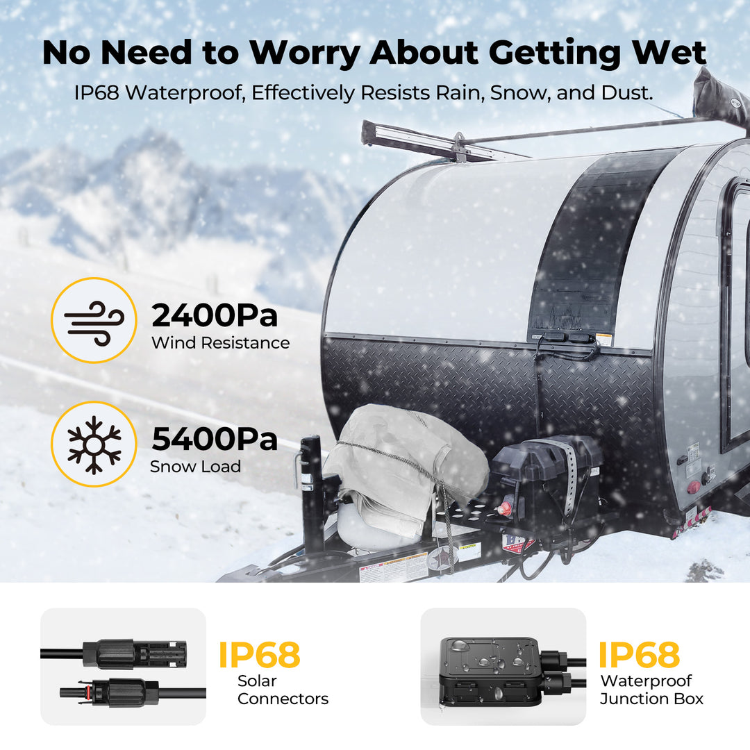 200 Watt CIGS Flexible Solar Panel with Adhesive features a pre-assembled adhesive backing that eliminates the need for brackets and drilling during installation. No tools are required for an easy and hassle-free setup.