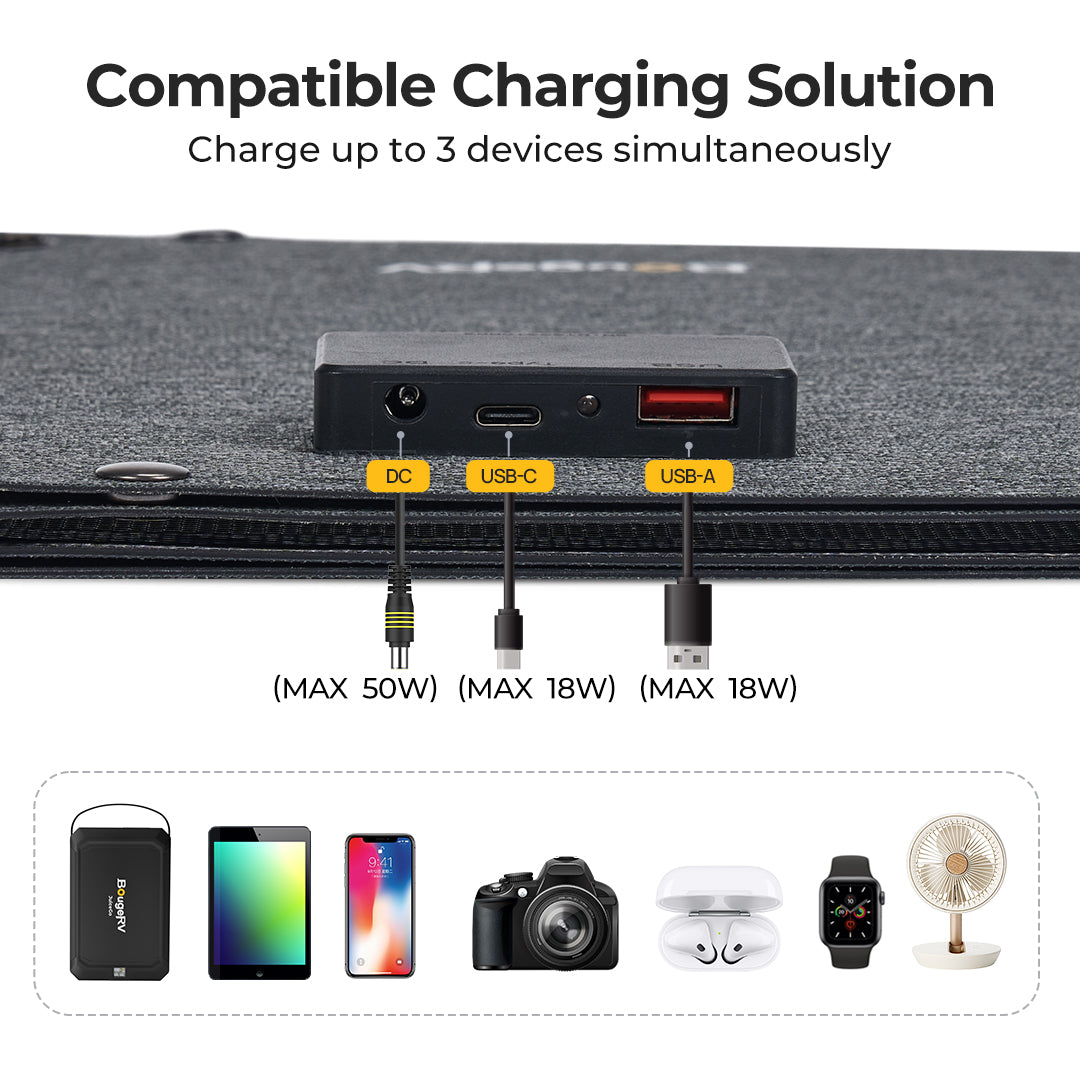BougeRV 50W Fiberglass Flexible Portable Solar Panel