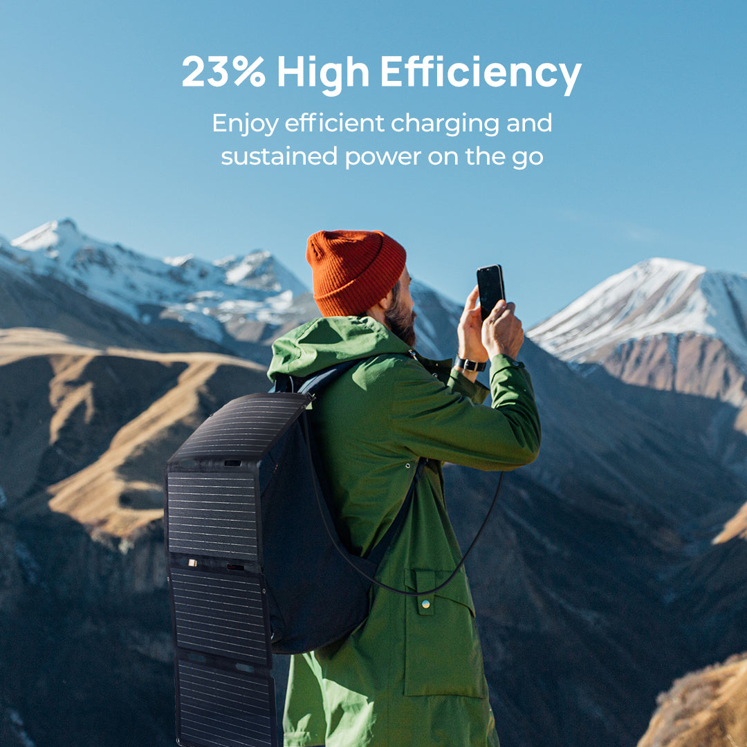 The 50 watt foldable solar panel can produce around 200 to 300 watts/hour of electricity every day, depending on the amount of sunlight it receives.