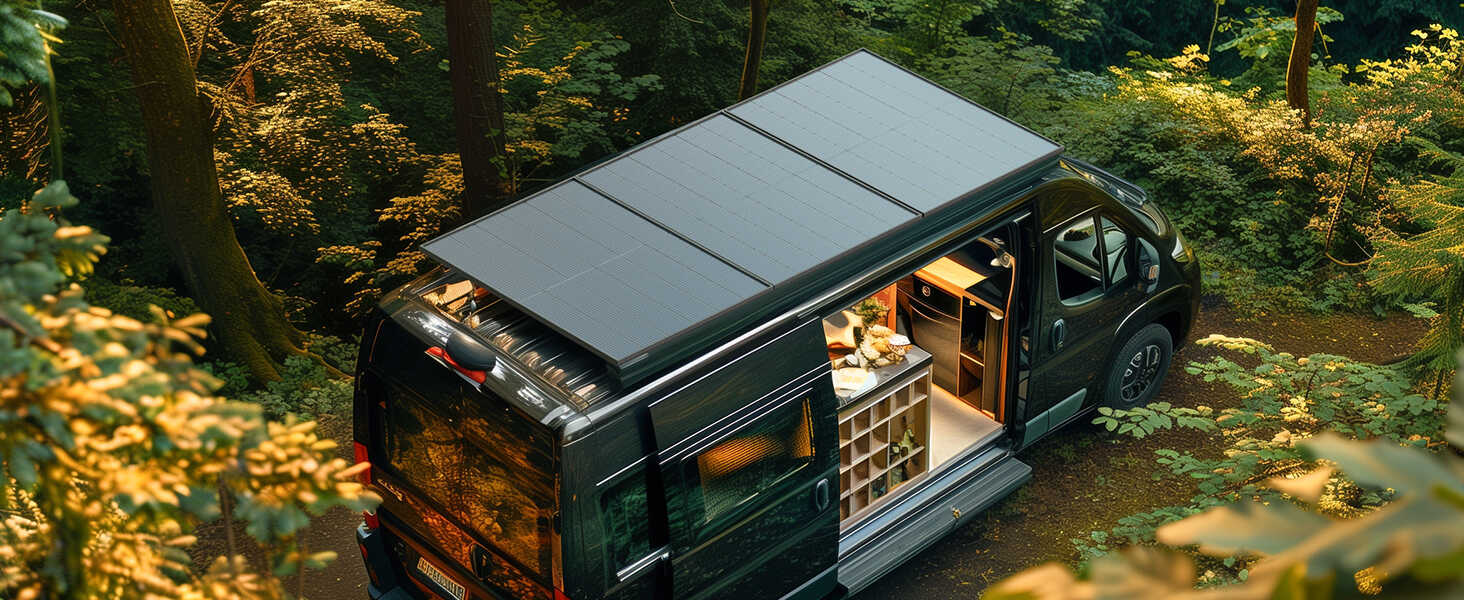 BougeRV 400W solar panel features a black corrosion-resistant aluminum frame. All-black style solar panel is more suitable for your black roof, and it is integrated without being obtrusive.