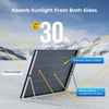 BougeRV sturdy Bifacial 400-watt solar panels can withstand high wind (2400 Pa) and snow loads (5400 Pa) and have excellent performance in low-light environments. Corrosion-resistant aluminum material can withstand the changing outdoor environment and prolong its service life.