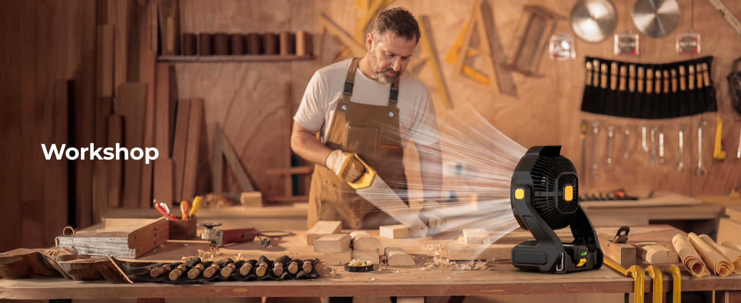 F02 Outdoor Fan Powerful Cordless Cooling for Work & Outdoors