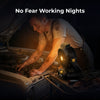 Designed for versatility, the F02 features a reinforced base, dual metal hooks, and a rotatable structure, allowing it to stand on floors or workbenches or hang from beams and racks. A built-in warm LED light provides convenient illumination for low-light worksites or nighttime outdoor use.