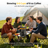 Equipped with a 144Wh NCM battery, the portable camping coffee maker can brew up to 5~6 cups of 8 oz coffee on a full charge, providing reliable performance in outdoor or off-grid environments. And the battery supports Type-C recharging, making it easy to power up and enjoy fresh coffee anytime, anywhere.