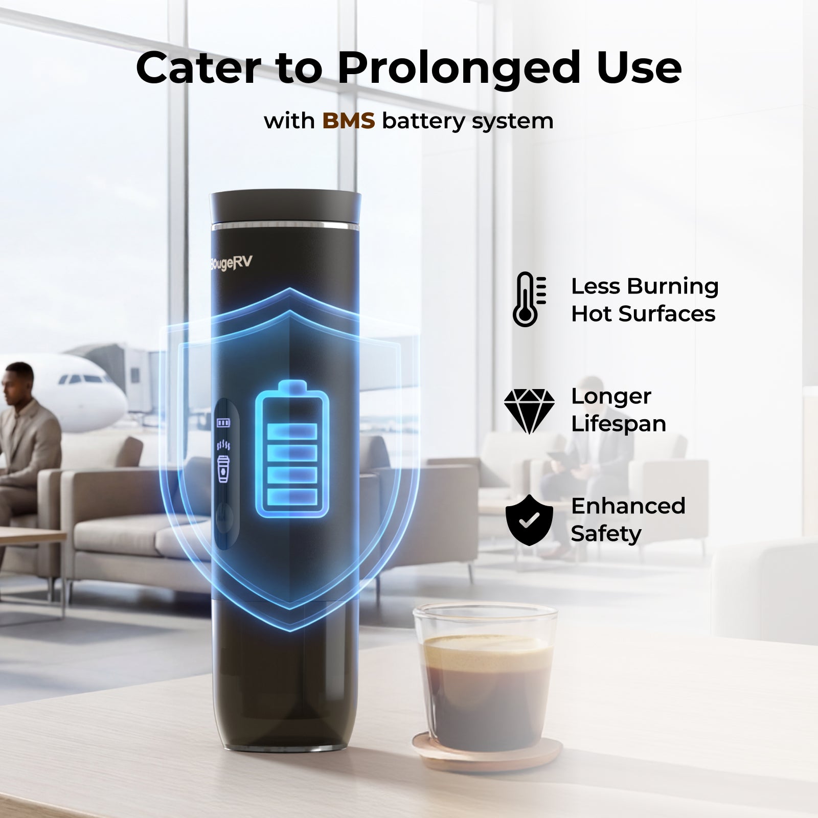 | Cups per Charge | 2–3 Cups (4 oz per brew) | BMS | ✅ |