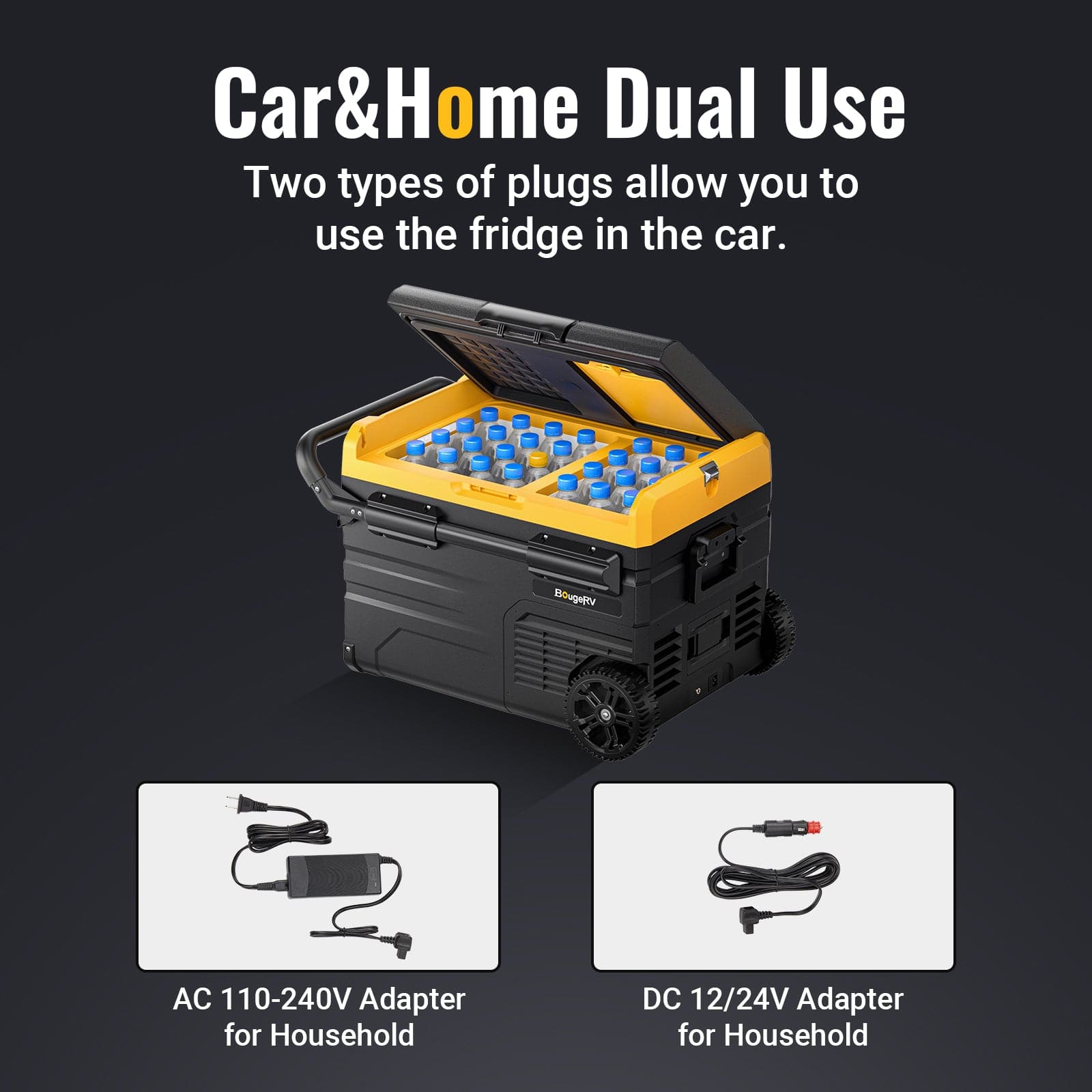 This 12v portable refrigerator boasts two independent compartments that can be controlled separately. It can function as both a fridge and a freezer simultaneously, allowing you to cool drinks and chill meat all at once.