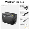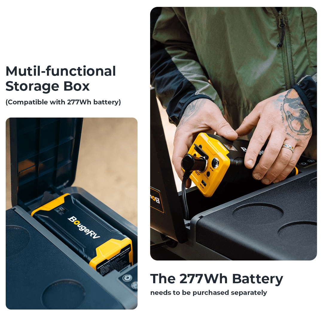 Most portable mini fridges plug into your car’s 12V DC power outlet (cigarette lighter socket). BougeRV 12V fridges also support 110V AC power for home or indoor use.