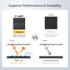 The BougeRV 200W curved solar panel is made with high-quality 10BB cells, resulting in a remarkable 23% conversion rate, the highest in its class. This design feature not only extends the solar panel's lifespan but also enhances its efficiency.