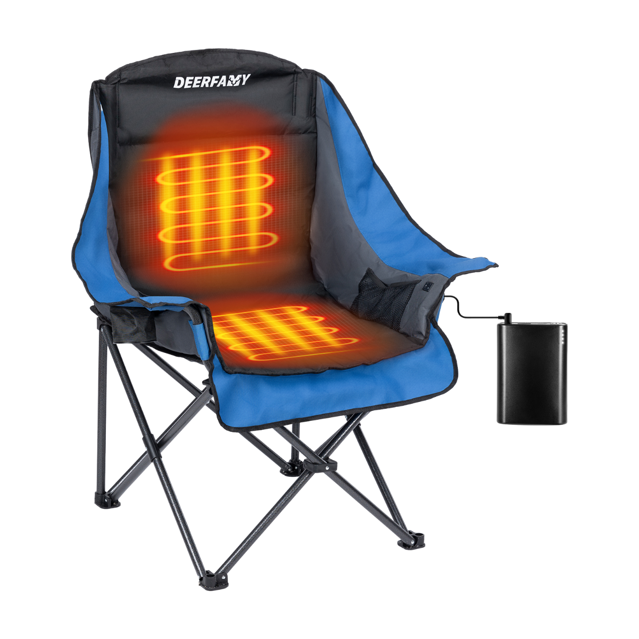 Designed for easy folding and transport, this heated chair features armrest cup holders, side storage pockets, and a large mesh magazine pocket on the backrest. Perfect for camping, fishing, tailgating, sports events, RV trips, and any outdoor activity.