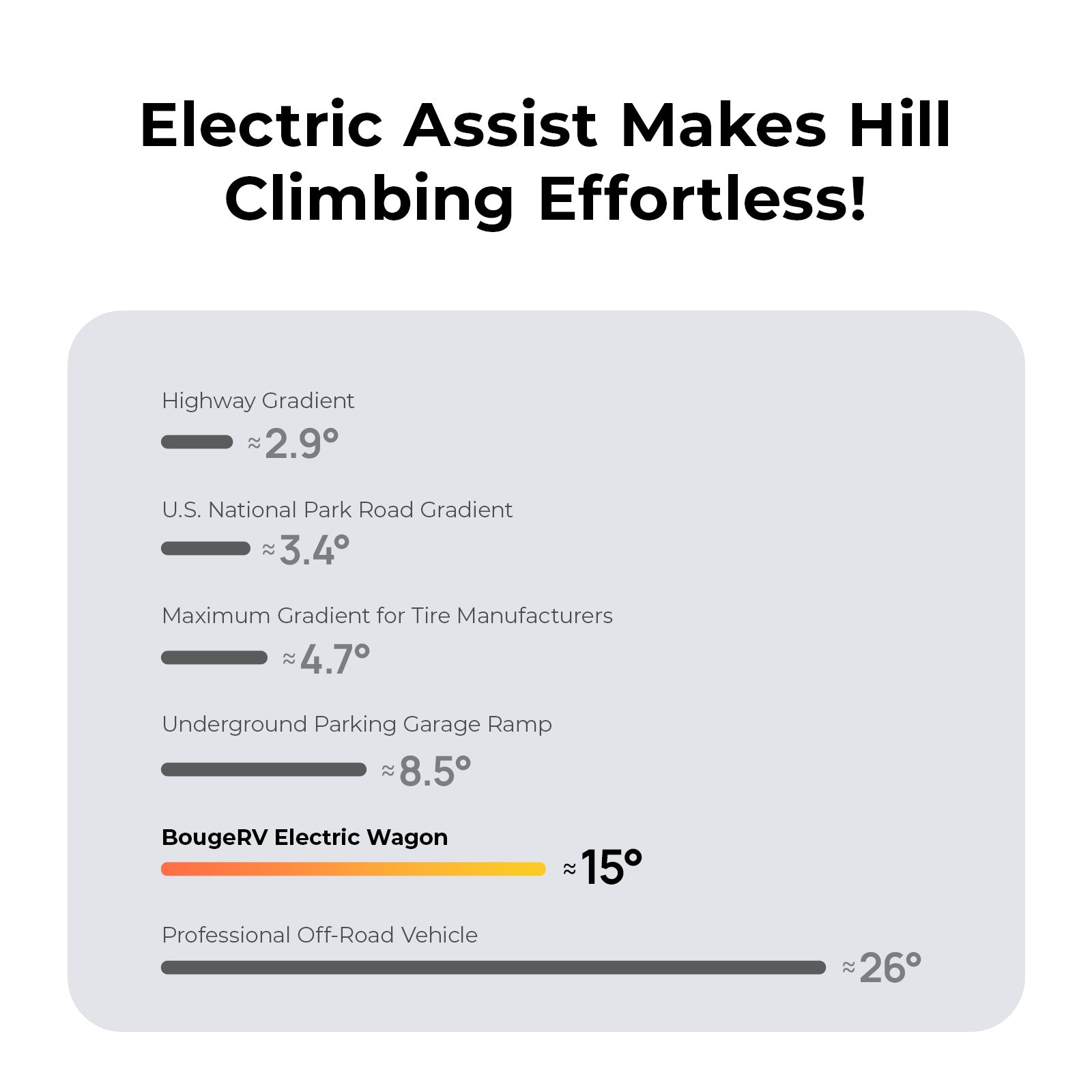 BougeRV electric utility wagons can handle loads up to 440 lbs, making them perfect for family gear, camping, gardening, shopping, outdoor activities.