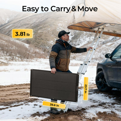 BougeRV advanced fiberglass curved solar panel, weighing only 4 pounds, provides exceptional portability compared to traditional glass panels. Its lightweight design simplifies and accelerates installation, offering an easy replacement for conventional options.