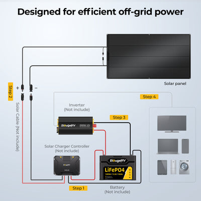 BougeRV solar panels are designed to withstand various environmental conditions, including rain, snow, and UV radiation. These fiberglass curved solar panels are perfect for rvs, boats, vans.