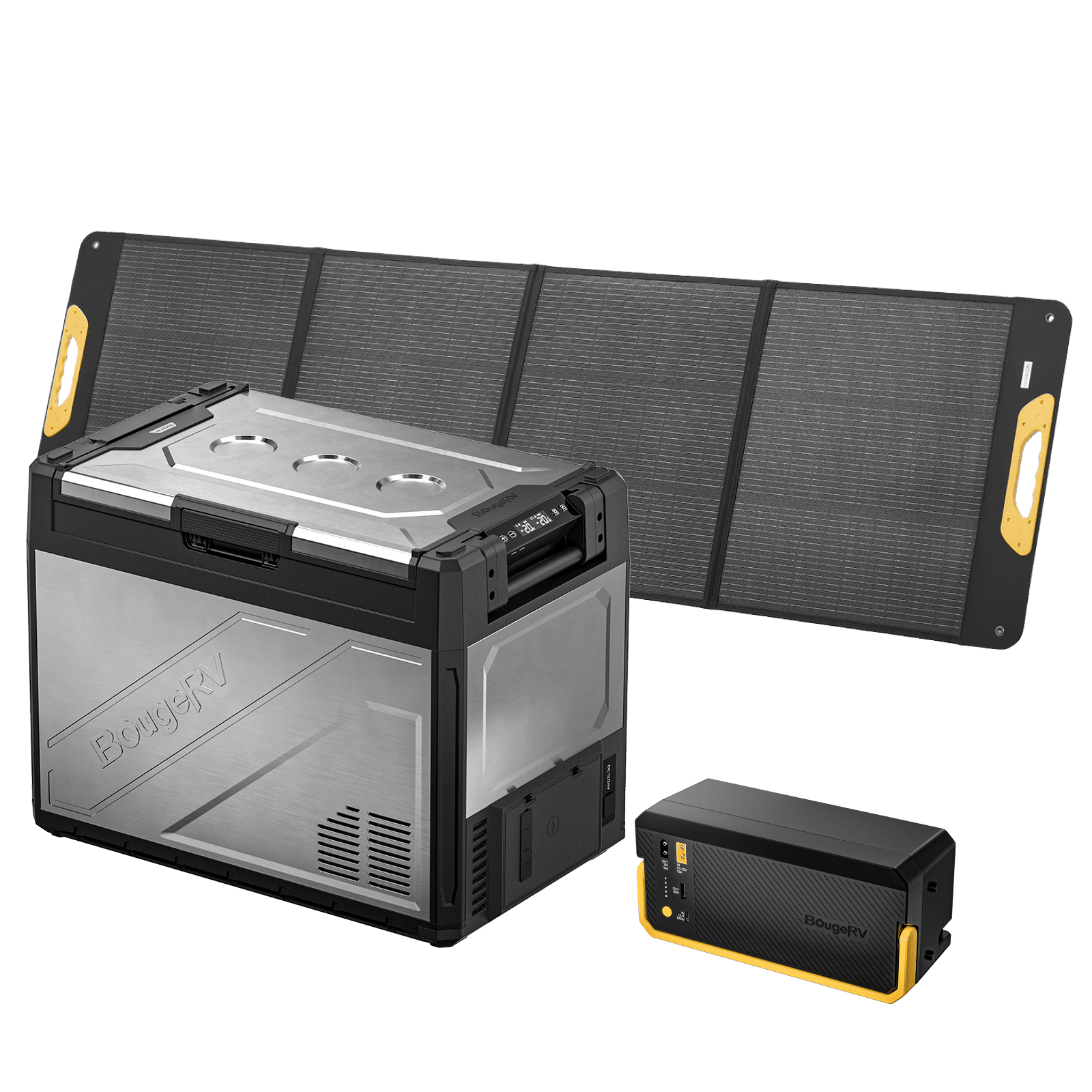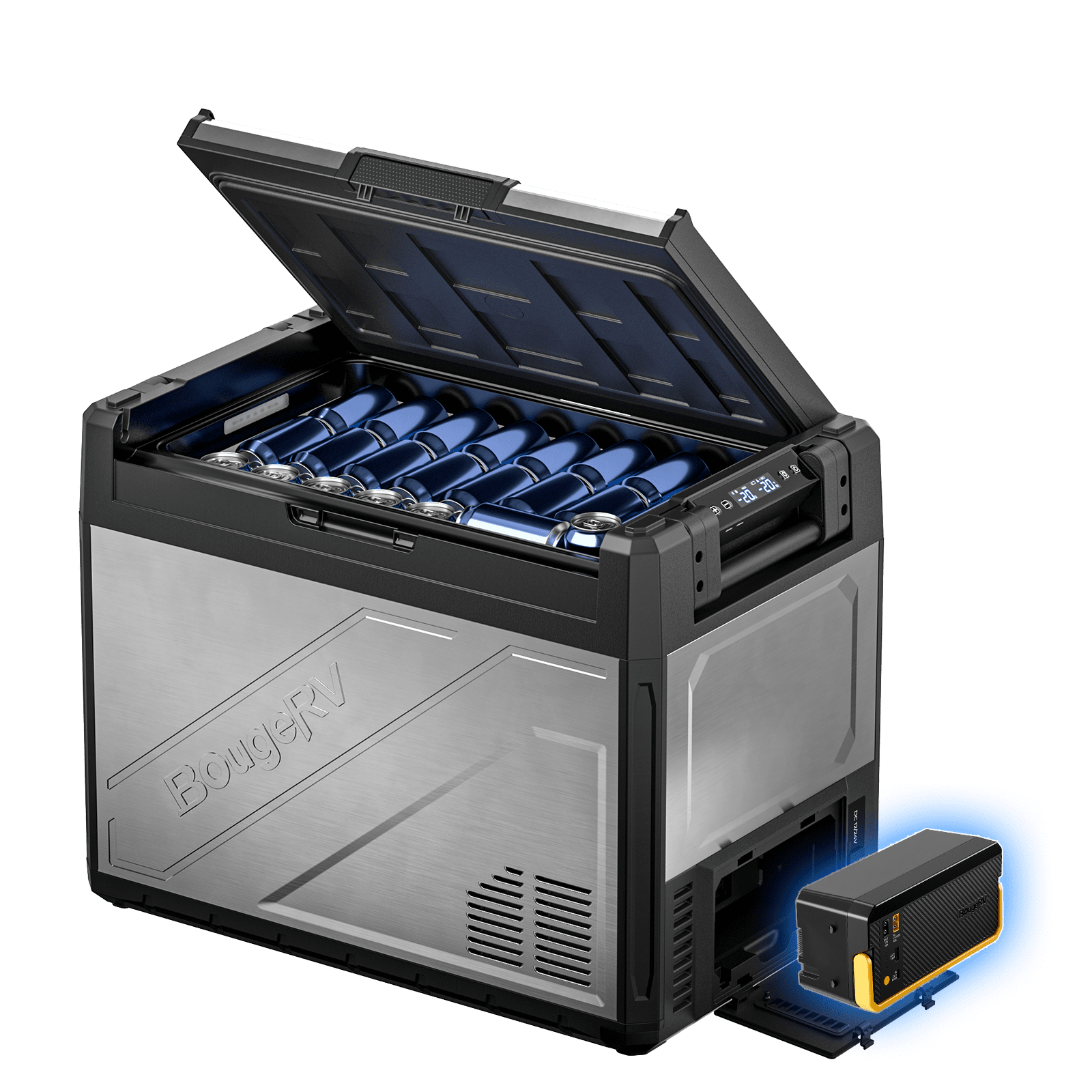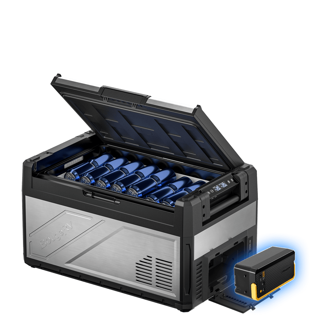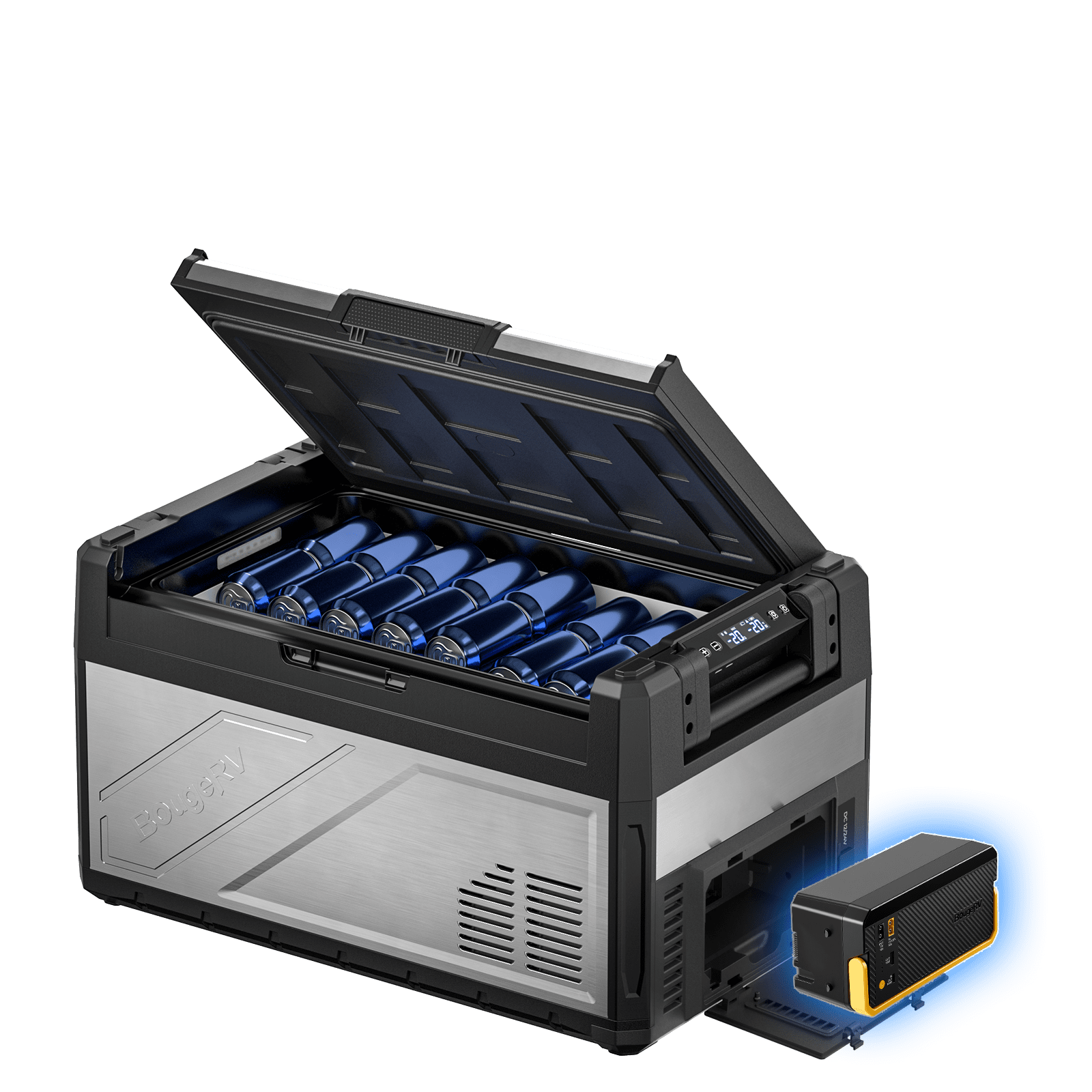 Our overlanding coolers are powered by a 12/24V DC car plug or a 100-240V AC (using the adapter), or 12-50V solar.