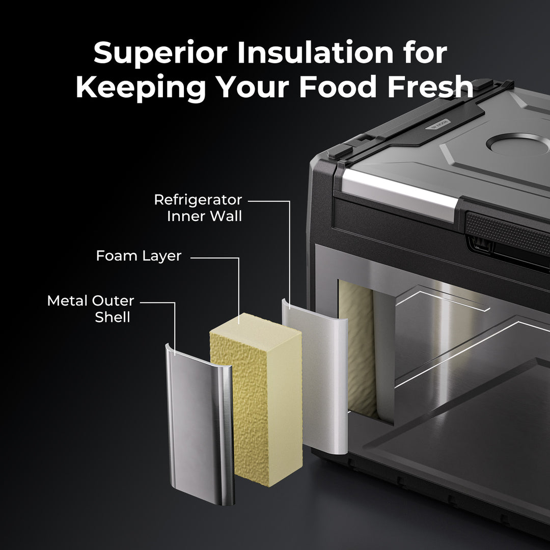 (1) Heavy-duty modern metal fridge: be built to withstand the toughest terrains with durable stainless steel construction and shockproof capability up to 40°C.