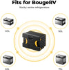 You can charge the battery via a standard AC outlet using a charger provided with the fridge or through a vehicle's DC socket while driving. BougeRV Rocky fridges with batteries also support solar charging options.