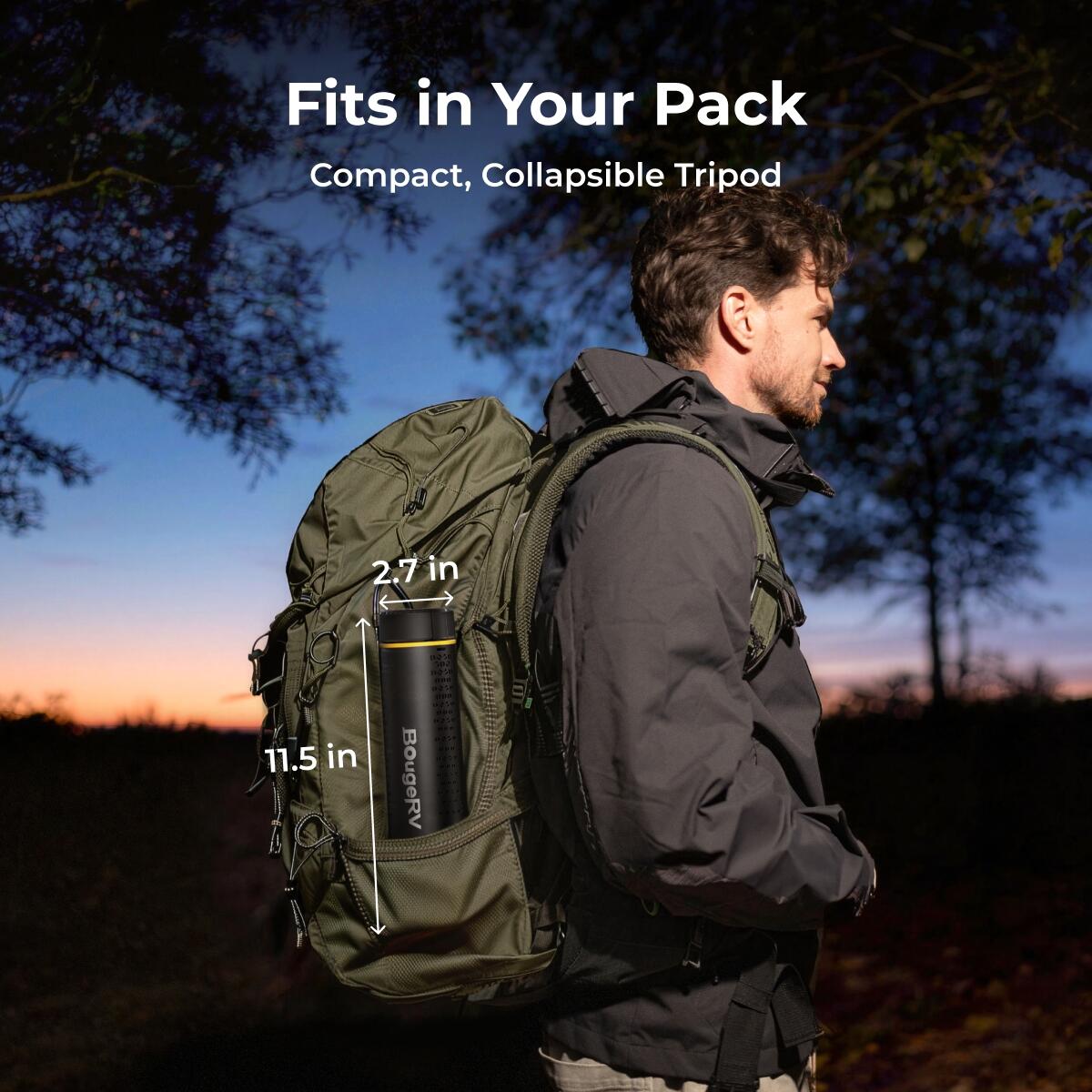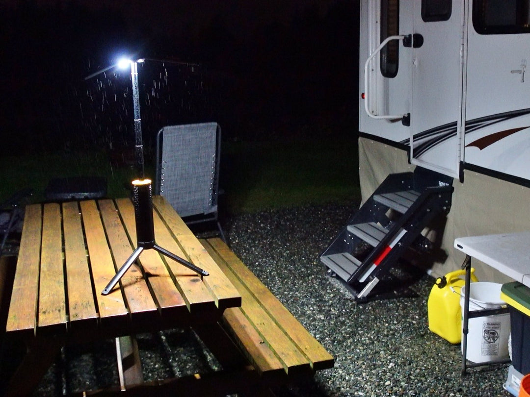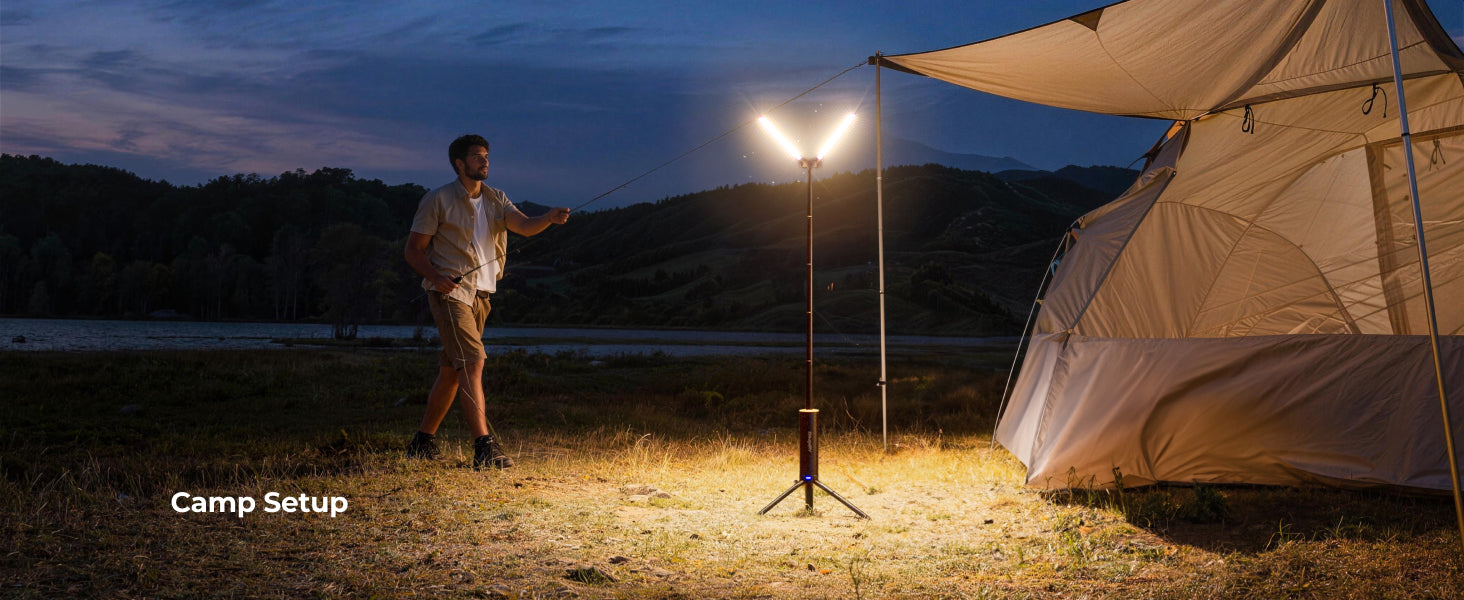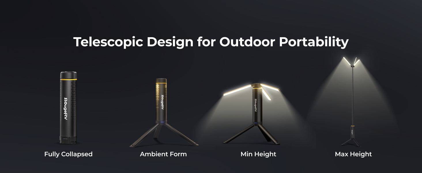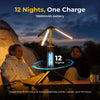 This telescopic camping light uses a 15,600 mAh rechargeable battery that provides up to 12-night runtime on low brightness settings, making it ideal for multi-night camping without frequent recharging. It also supports fast charging (30W), reaching a full charge in about 3 hours.
