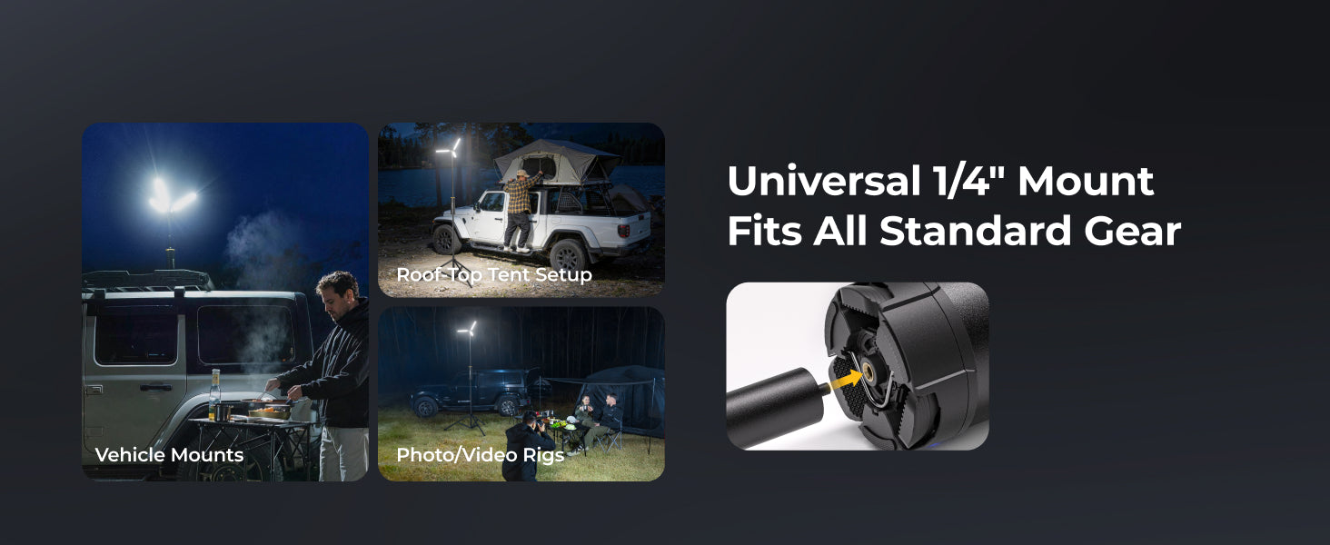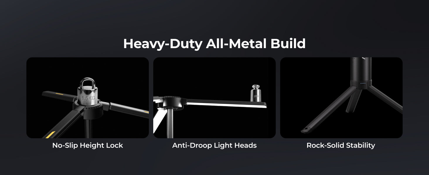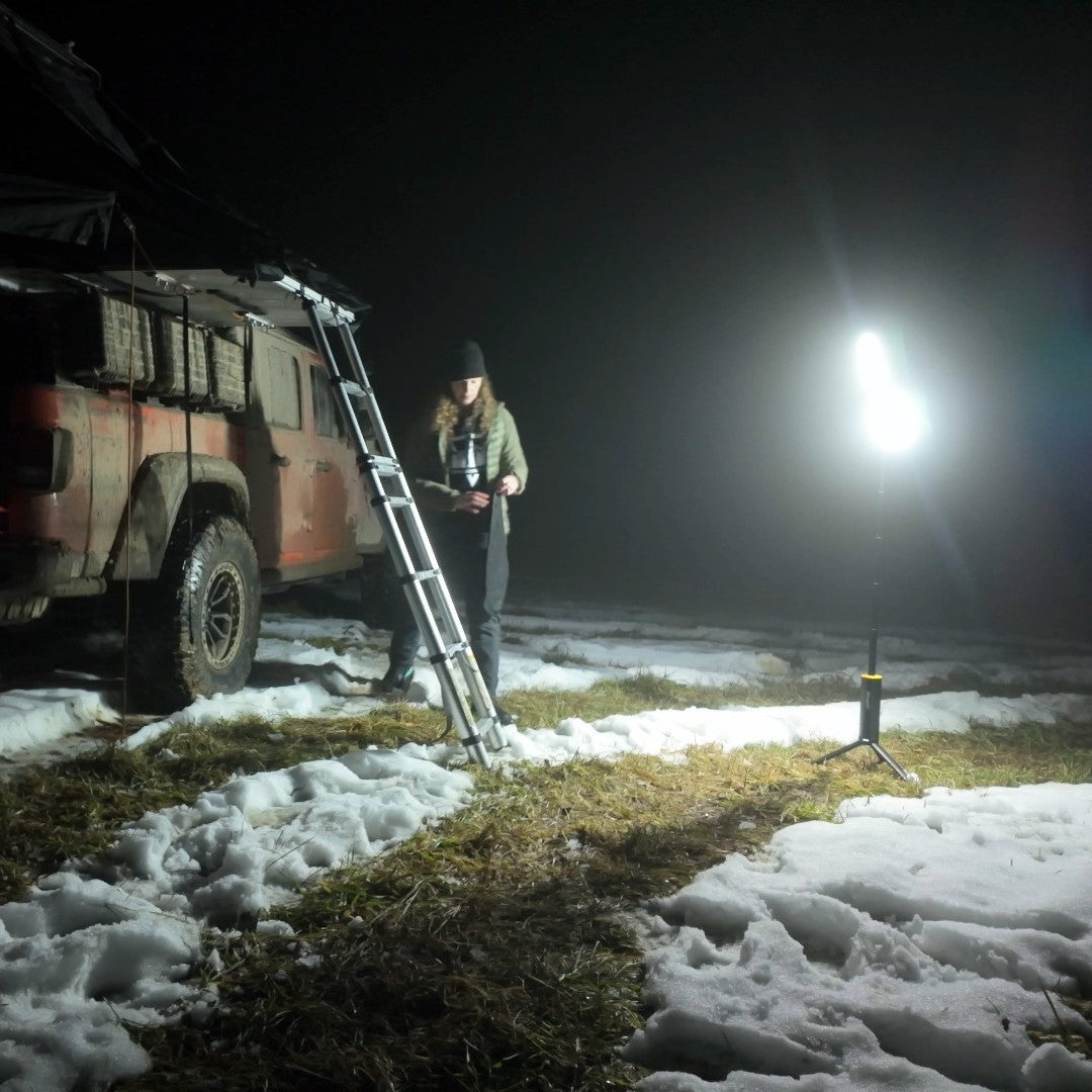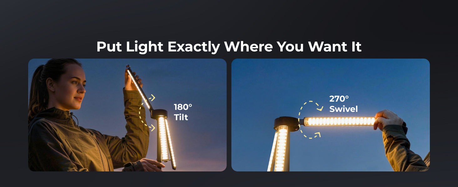 Yes! The T1 telescopic pole extends up to 66 inches, and the light panels can rotate and tilt for customized beam control— ideal for directing light exactly where you need it.