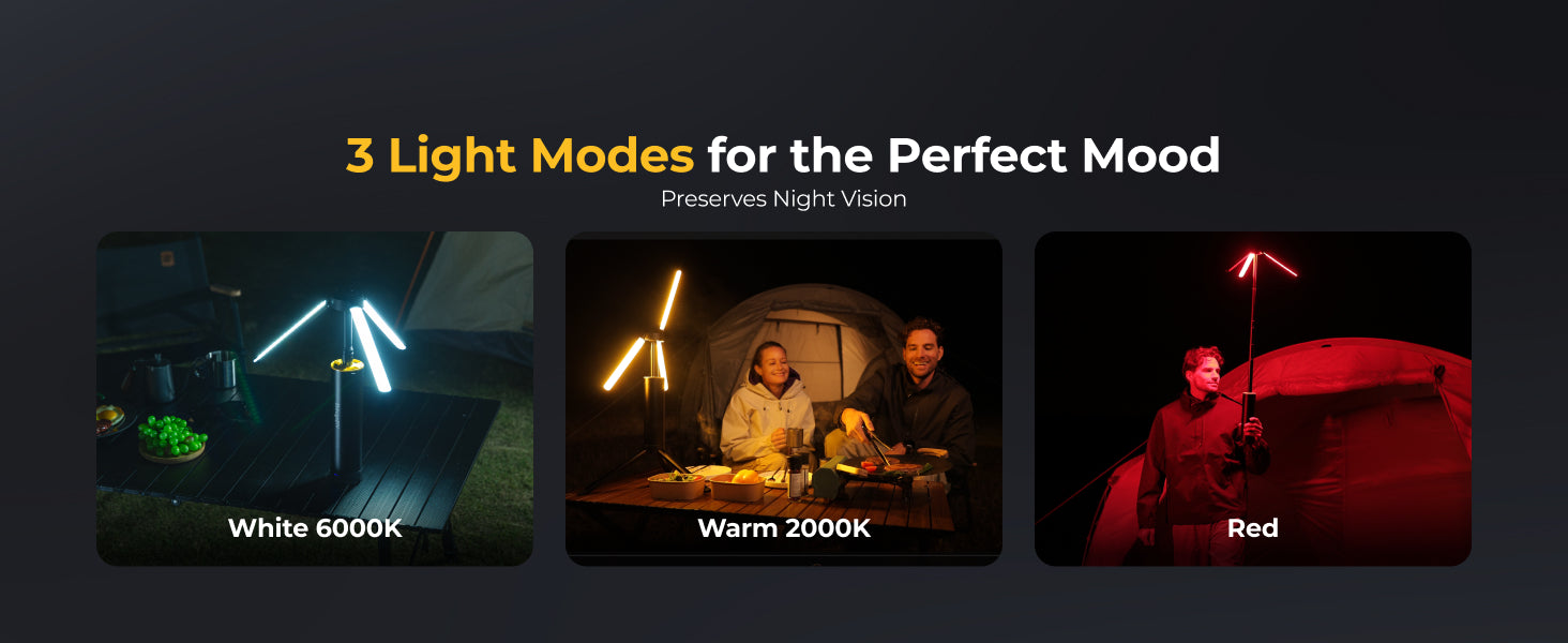 This long-lasting camping light features multiple brightness levels and light modes, including standard bright white for visibility, warm light for ambiance, and SOS emergency mode when you need to signal or attract attention.