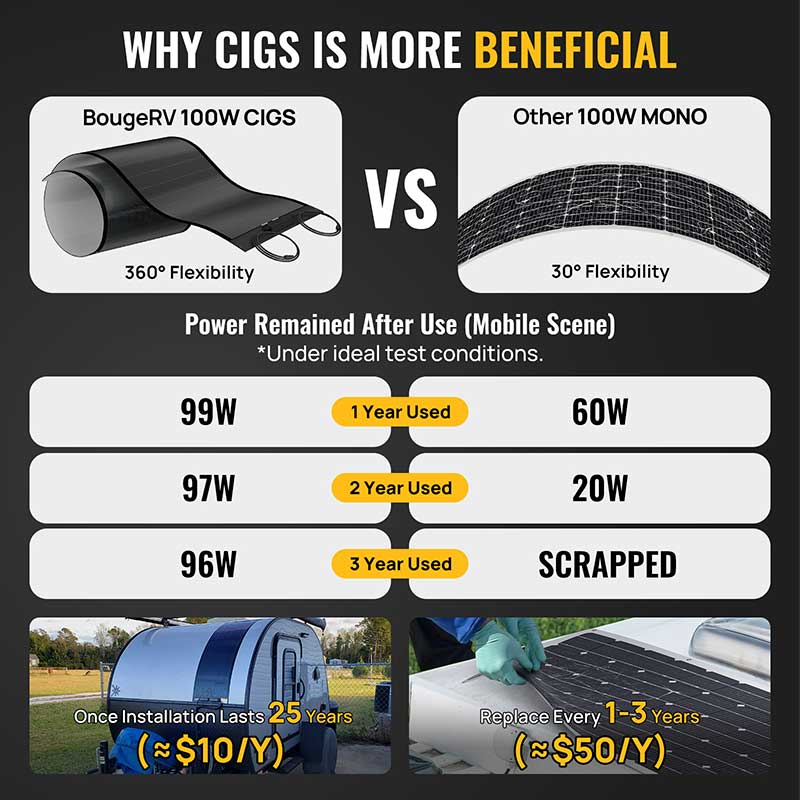 BougeRV Yuma 100W CIGS Thin-film Flexible Solar Panel with tape (Refurbished)